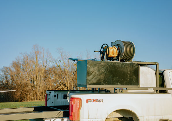 The Kodiak II takes it a step further by incorporating all the benefits of the original model, plus a sturdy 13 1/2 foot aluminum pull-out platform, that provides a safe landing area for your ag drone. It also includes a swinging toolbox, allowing for quick and convenient access to your batteries and equipment all from the bed of your pickup.